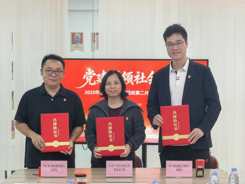 为进一步推动片区党建资源并享、活动共联、发展互促,活动现场举行了党建共建签约仪式,广州市创意经济促进会党支部书记杨广梅与广州市志城社会服务发展中心许仕伦书记、广东岭南至诚社会工作服务中心董世征书记上台签约,现场掌声雷动。此次签约将促进“党建引领、多方联动、融合发展”的片区党建新格局。