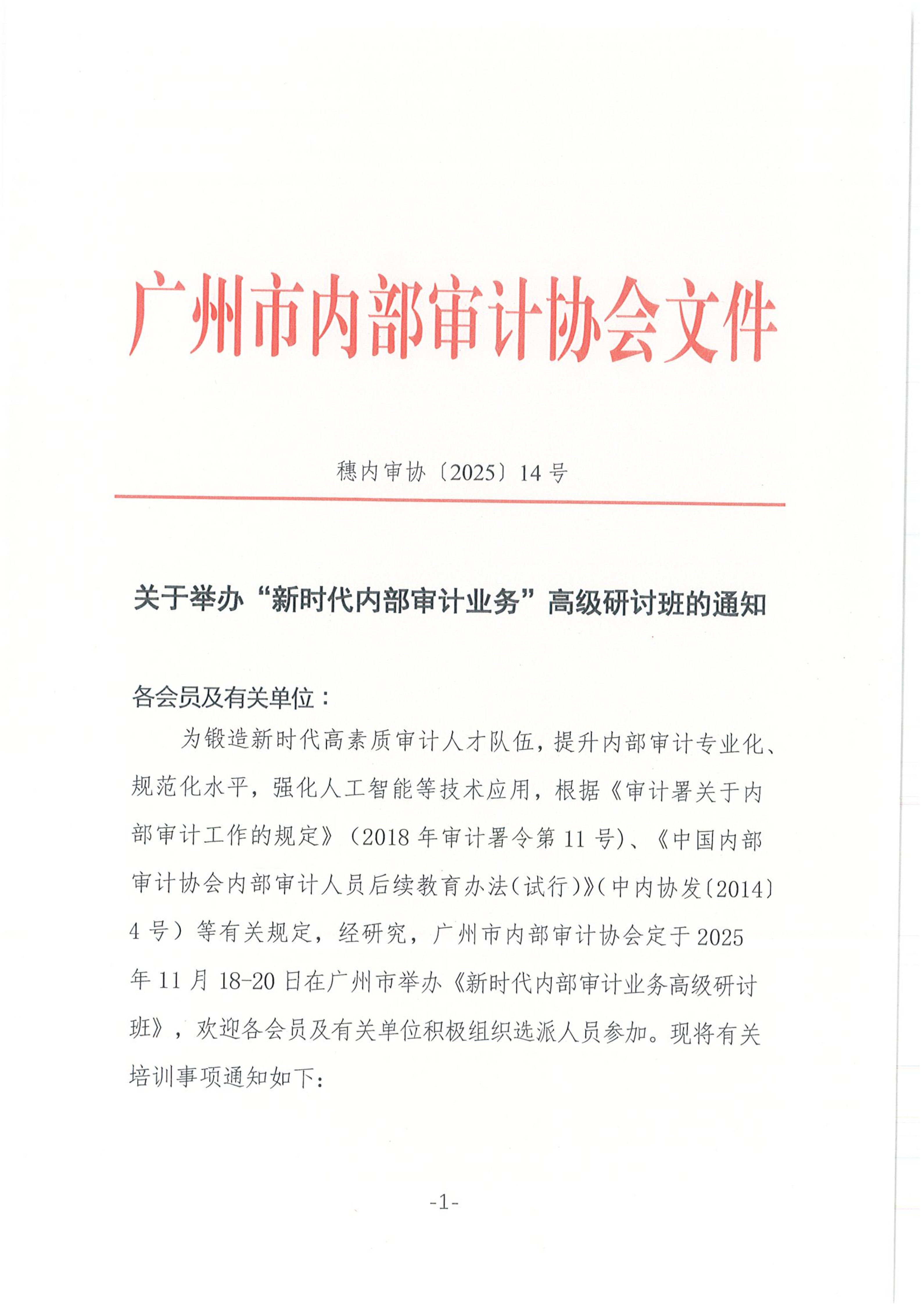 PDF下载:穗内审协〔2025〕14号 关于举办“新时代内部审计业务”高级研讨班的通知.pdf