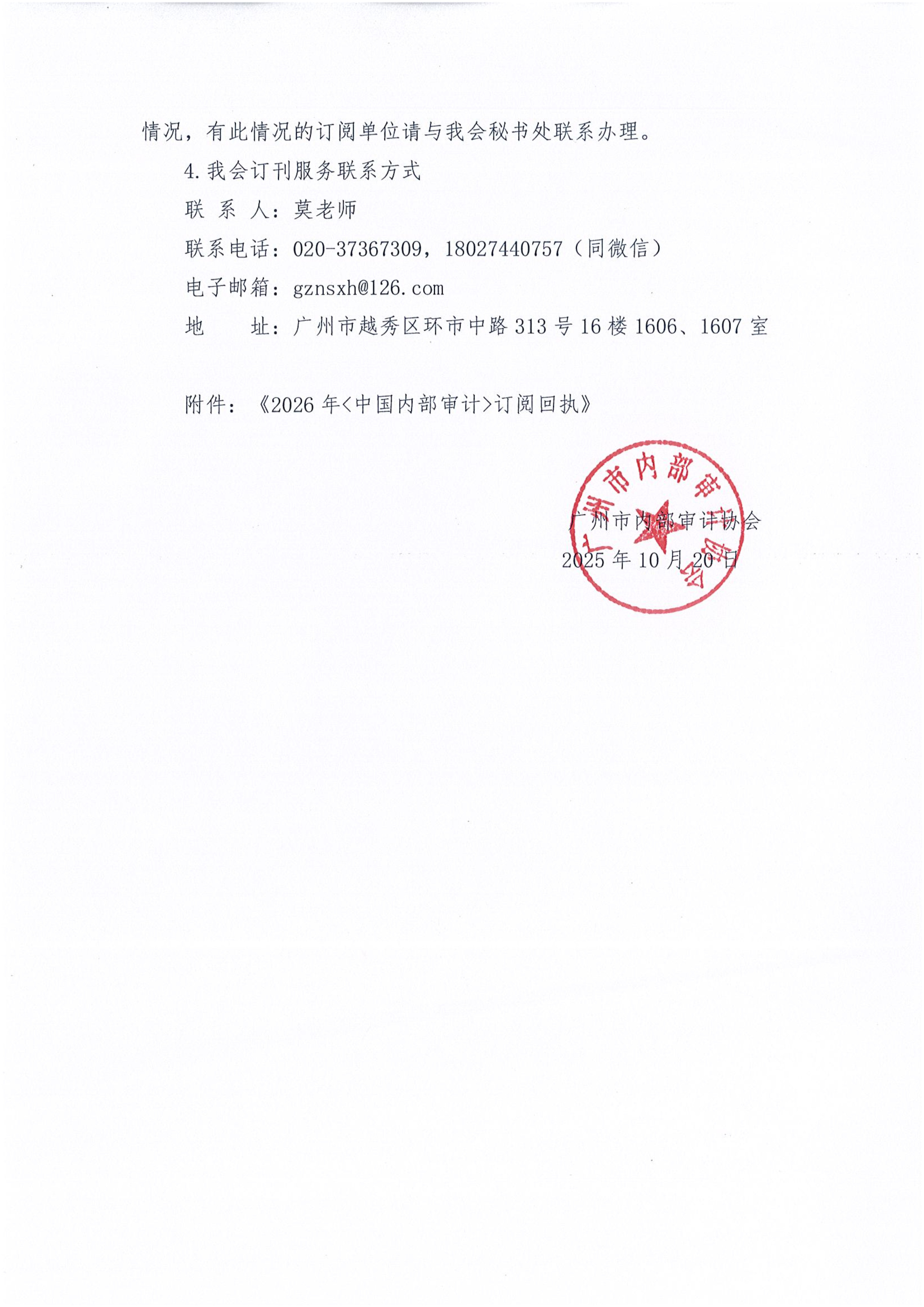 PDF下载:穗内审协〔2025〕15号 关于2026年《中国内部审计》杂志征订工作的通知.pdf